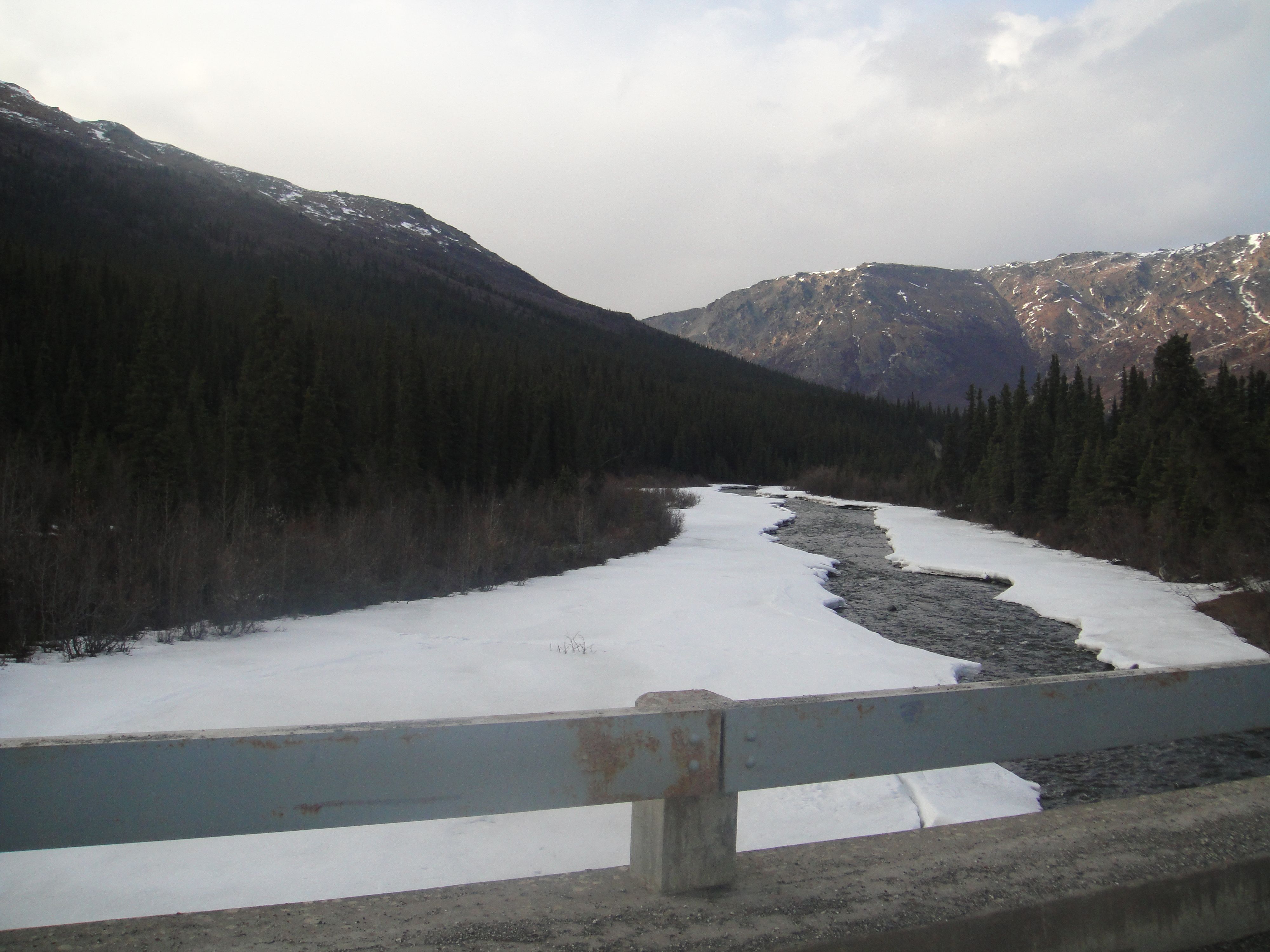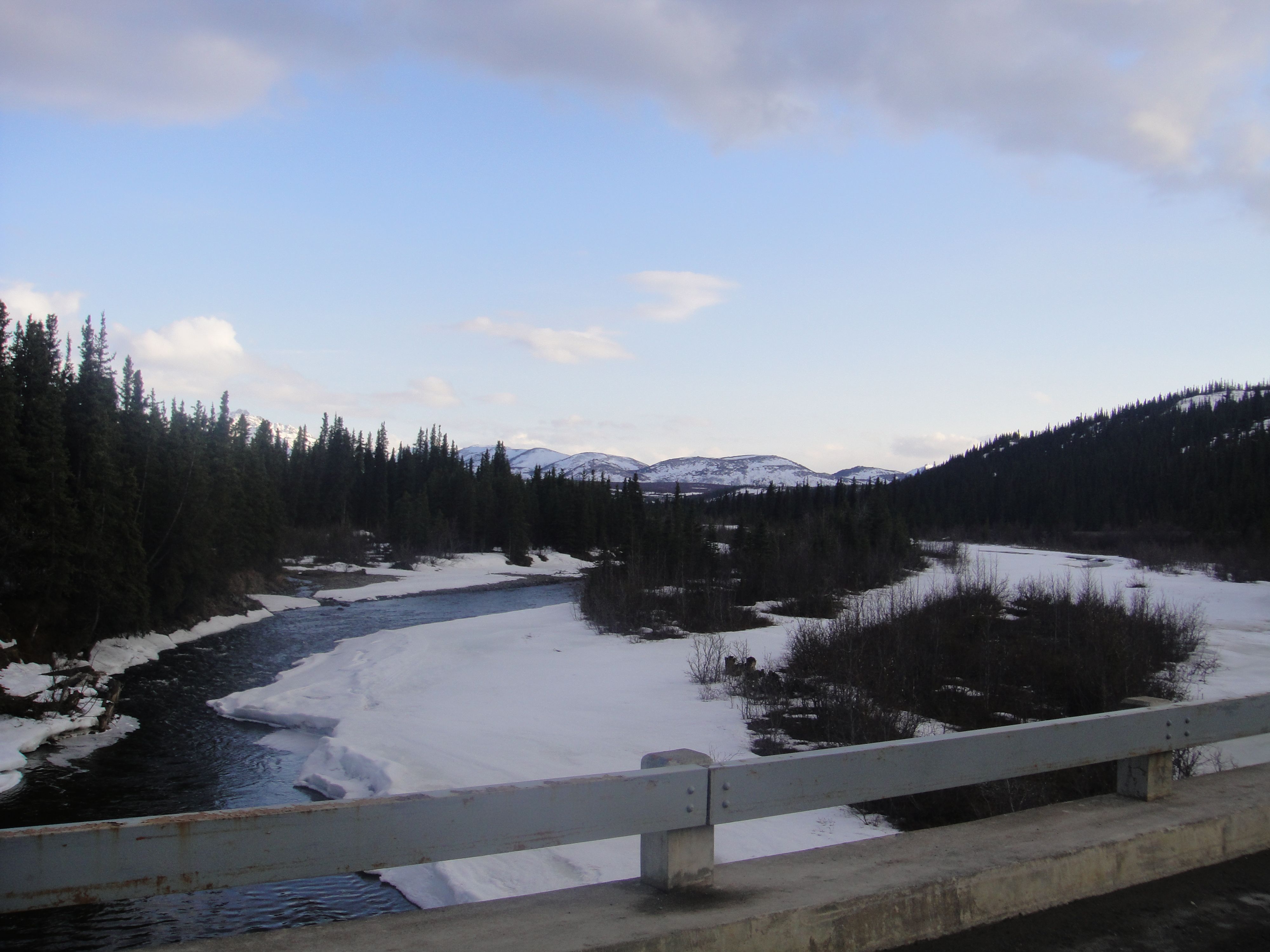 We had lunch at the 30 miles mark with this great look-out over a mostly-frozen river.