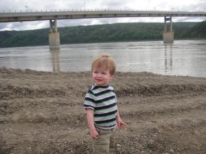 So, finally, Tuesday night there was a proper vehicle available to rent for Wednesday. God’s timing is perfect…Wednesday was our last day available to do it! After sorting out a few annoying setbacks with the rental company, we were on the road only an hour later than intended. The 200 mile drive north took about four hours. We did stop for lunch and running around at the mighty Yukon River, about three quarters of the way up. Levi was ready for a break and we were hungry.