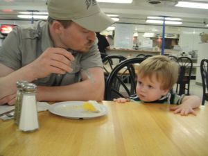 We arrived to the little sign, got out, got the picture, got a certificate, and swatted mosquitoes. Levi ran around a lot and developed his own phrase: “I run to the mountains!” He pointed to the hills on the other side of the highway and then started running (not onto the highway, but in that direction).