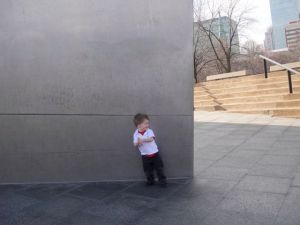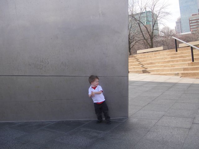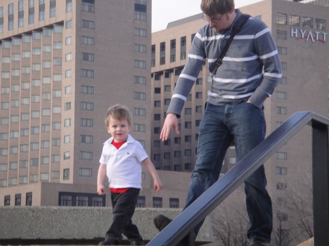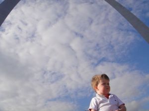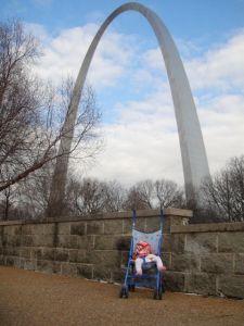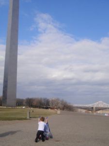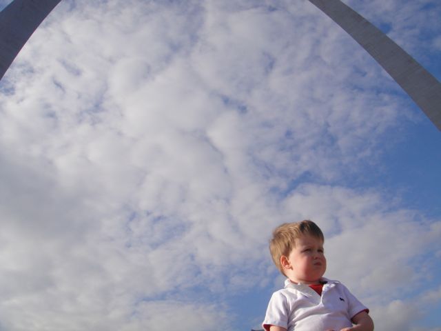 Levi was being cranky, but I like to pretend it's his serious pose...under the Arch, of course!