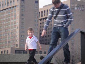 Levi in front of the Miami, OK courthouse (Miami pronounced my-aa-mah)