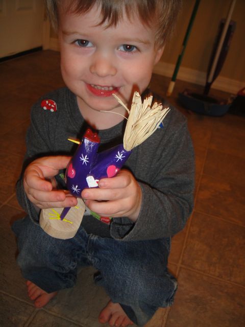 Levi helped Daddy pick out Mommy's Valentine's Day present - a chicken!