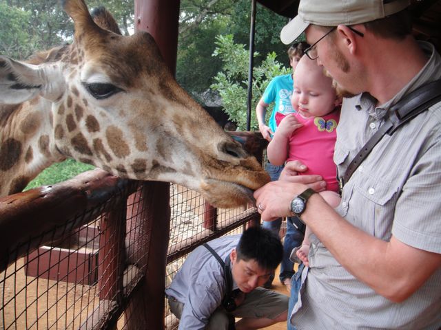 Ok, much of it was wasted sitting in traffic. Nairobi has some of the worst traffic on the continent and it really rivaled any that we experienced growing up in Seattle. But, our first stop outside the airport was a giraffe park. We each got to pet a giraffe and feed it a pellet. If one desired, they could put the pellet in their mouth and get a kiss. We are not that lonely, though. They also had some warthogs and tortoises roaming about.