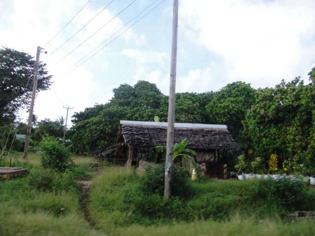 Taken from a moving vehicle, the roofs are thatched grass “panels” but are also water-resistant and very tropical-looking.