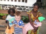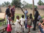 Finally, a few people started to trickle in and an hour later it was a party! The swing hanging from a very tall tree branch became a hit with all of the kids (and a few of the adults), since so many of the missionary folks speak the languages (both French and Lingala), we were all able to communicate. But, really, it was most fun to meet and spend time with the families of a few of the Congolese we’ve gotten to know a little bit. Even a few sentinels working nearby that we knew and my vegetable lady, Mama Victorine, stopped by.