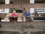 Just after sundown, Pepe’s fiance, Joy, arrived and we had our neighbor Orelik come over to help translate. Pepe finally got there and we started party #2. Pepe is like a big kid. I went in to make a quick dinner and when I came back twenty minutes later, I found a rope-climb competition. Turns out that swing is fun for everyone! We ate and Pepe had to get back to work as sentinel for the night across the street.