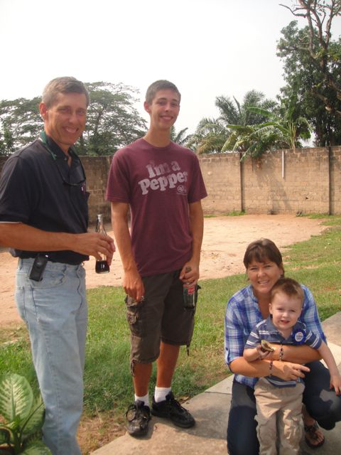 Garth Pederson, a MAF pilot, his son Sam and Levi’s “Aunt” Sandy Francis.