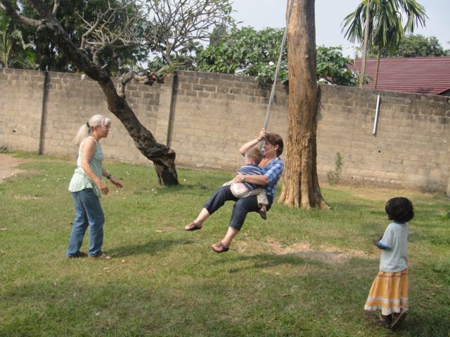 Mama Valerie and Mama Sandy were helping Levi swing. Little Sarah, Papa Mosengo’s daughter, was next in line…