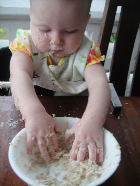 Amelia eating her oatmeal. This was Daddy’s idea.