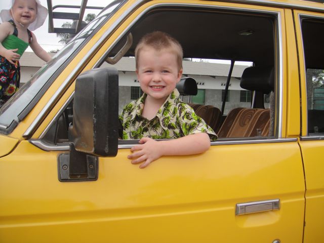 Levi and Amelia playing in the truck after church. It’s totally normal to put your baby on the hood of a truck.
