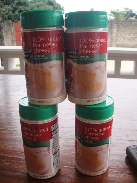 Only missionaries get so excited about being brought parmesan cheese (from TARGET) that they take pictures of their bounty