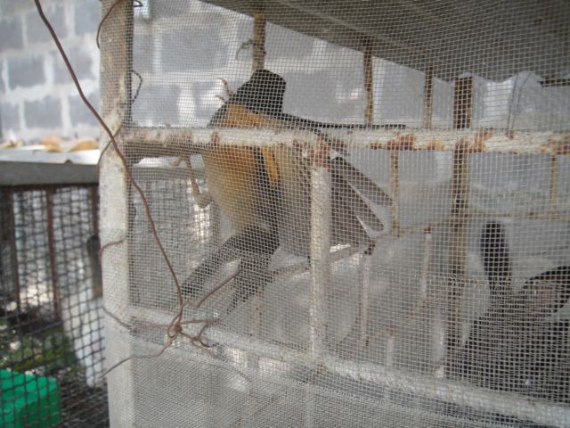 A bird was hungry enough to get into our bunny cage