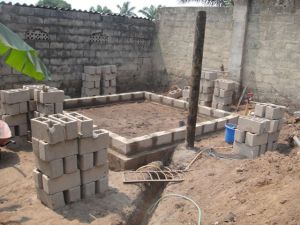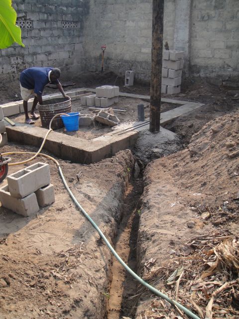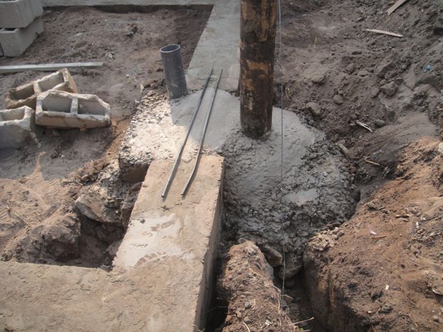 The soil on site is very sandy, so we had to go pretty deep to get a good foundation. My initial thought was to put in a floating slab with an apron to support the walls, but we ended up going local style with a block foundation and a poured floor.