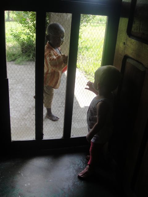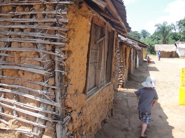 We strategically picked out rooms for sleeping. We would put Amelia in the pack-and-play in the closet with a mattress for a door. The foot-tall gap at the top would provide ideal airflow, while blocking out noise and light. Levi would get the top bunk in our room and we would get the small water bed below. Except for Levi’s bunk bed, all of the beds were water beds. You find this a lot in interior Congo for several reasons: they pack well, local mattresses are just foam pieces and not at all comfortable, and they keep you cool. Actually, in the morning coolness, they are downright chilly! However, this one was tiny and the mosquito net didn’t provide a lot of clearance around the edges, so it wasn’t ideal, but it worked just fine.