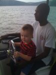 - My little dude driving a boat at 35mph on the CONGO RIVER