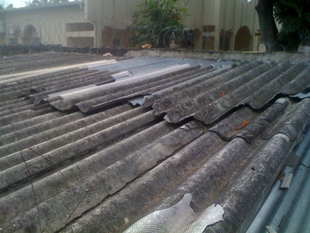 The roof on half of Nick’s guest house – that is asbestos/cement roofing, and I think it is past its prime