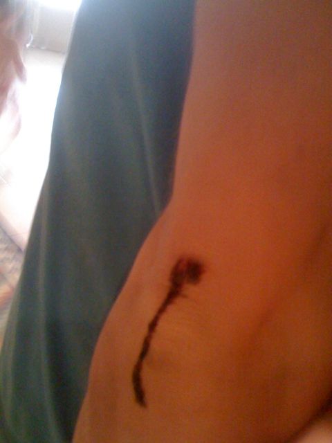 I knew I lost the fight with the mirror, but I did not realize the blood was running down my arm. When I got home I had a blood streak from elbow to wrist – and it was still oozing after 8 hours…