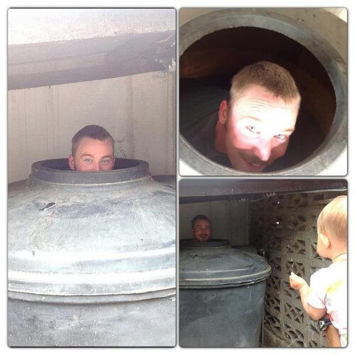 Matthew has been super busy finishing projects and putting out all fires (both literal and figurative) in between. Here he is installing a water tank at Nick and Jocelyn’s…Ruth seems a bit curious at their water tank creature.