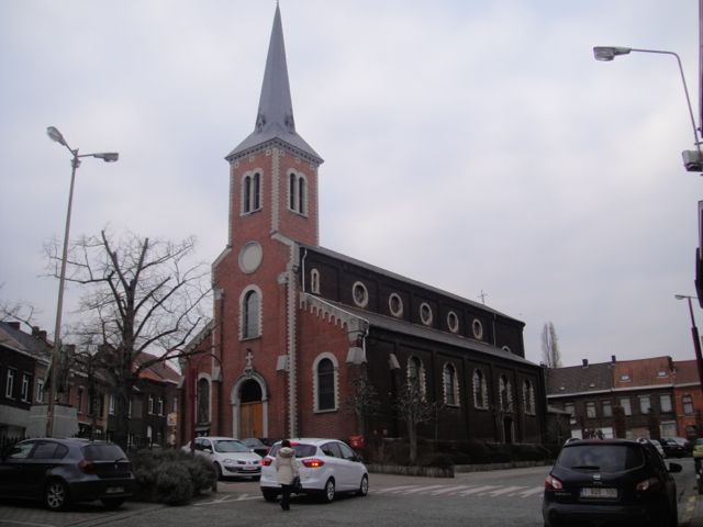 The church sits in the center of town