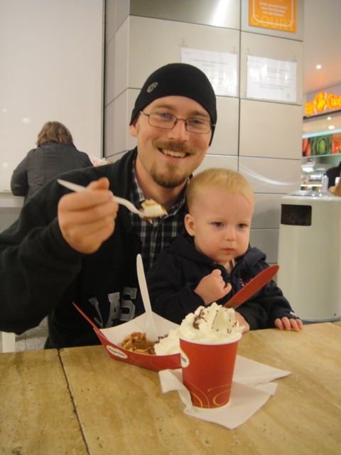 Matthew got a fancy waffle with REAL whipping cream, also a first in a year!