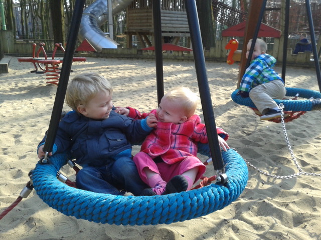 Toon (pronounced Tone) and Amelia share a moment in the swing