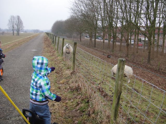 We took a walk along the dike in Giesbeek, and Levi loved the sheep