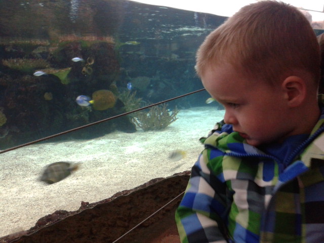 Levi studies the fish