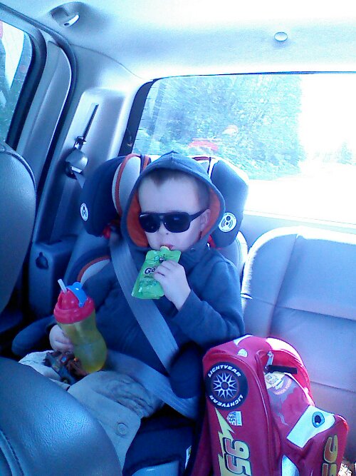 Trying out some all-American kid luxuries, starting with applesauce in a bag. Both kids loved it!