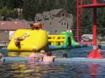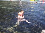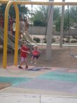 This morning was the regular mom and kids at the splash park. We had a great time, though it was super hot (109F or so again today), though the moms did get to park in the shade. Levi made a great friend in the sand and Amelia loved putting her head under one of the splash park features.