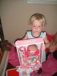 Amelia was exhausted since she decided to rise early on her birthday and fell asleep on the way home…and proceeded to sleep for the next three hours! Ah well, that’s what I would do on MY birthday… We hung around the house here for the rest of the afternoon. After Amelia woke, we celebrated with cupcakes and ice cream and Amelia opened her present from our sweet hosts: a new baby and a stroller! Every house we’ve visited that has a baby doll stroller she has clung to it and pushed it around and we were talking yesterday about we definitely needed to get her one once we were settled…how awesome that she was blessed this way!