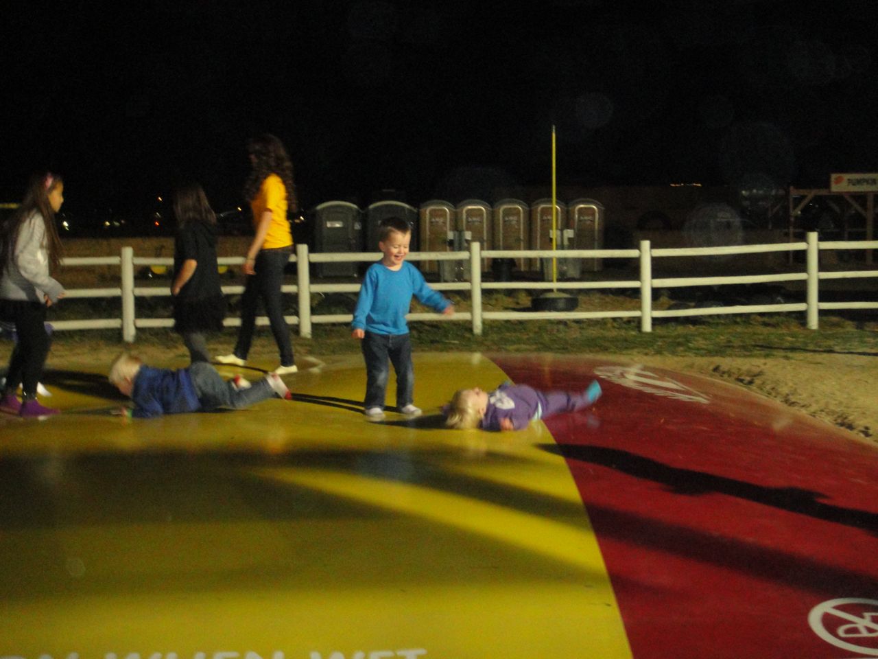 Anyway, Thursday night our church met out at the Farmstead, a local fall place with a corn maze, hay rides, pumpkin patch, and all sorts of fun things. Amelia LOVED the sheep – this is an understatement. Both kids loved the hay ride and the giant pillow jump-y thing. I was sure they would get bounced too much, get scared, and begin to cry right as Matthew headed to get some coffee, leaving me helpless, unless you want to see a whale on a giant pillow of air, but they laughed so hard the entire time, which saved me from any unnecessary bouncing.