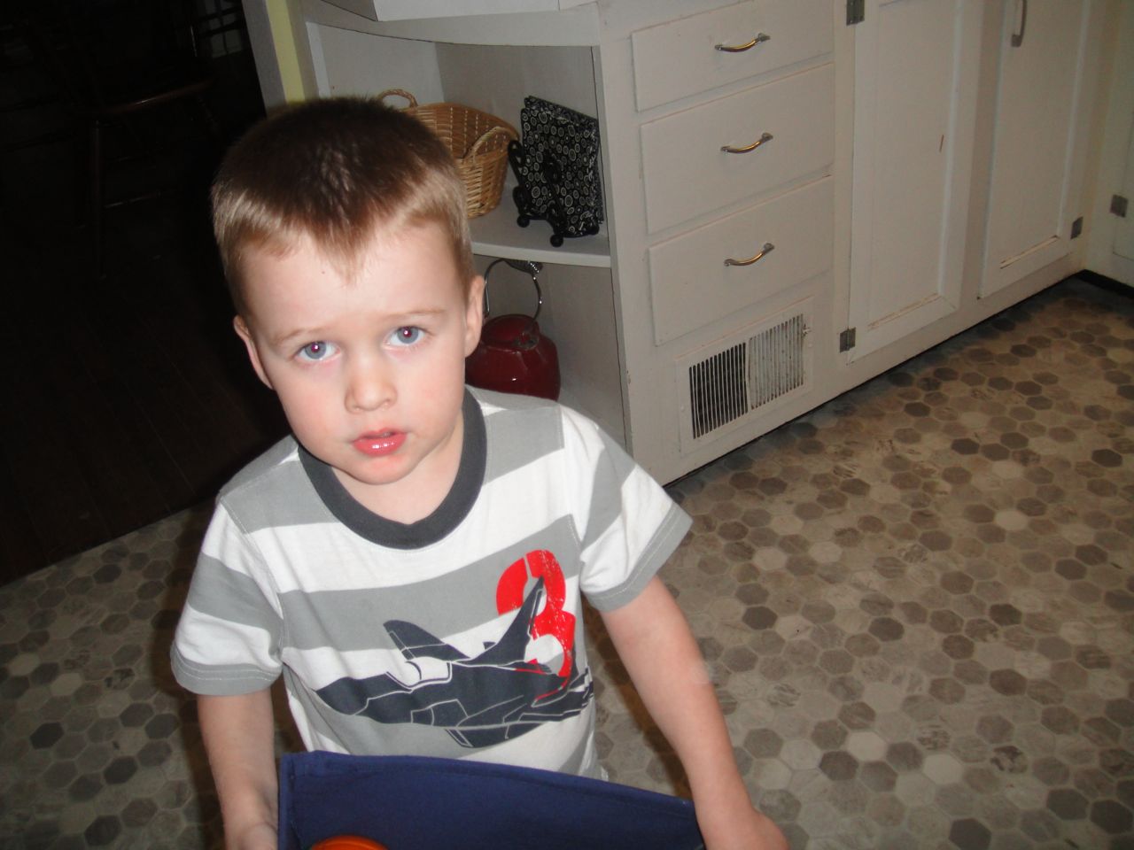 This is a great picture of the after…Matthew took it with glee as he pointed out: “Look! Pregnant, barefoot, and in the kitchen!”