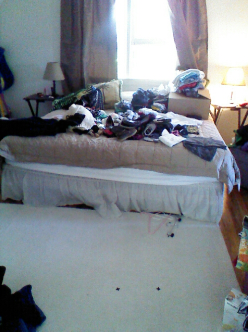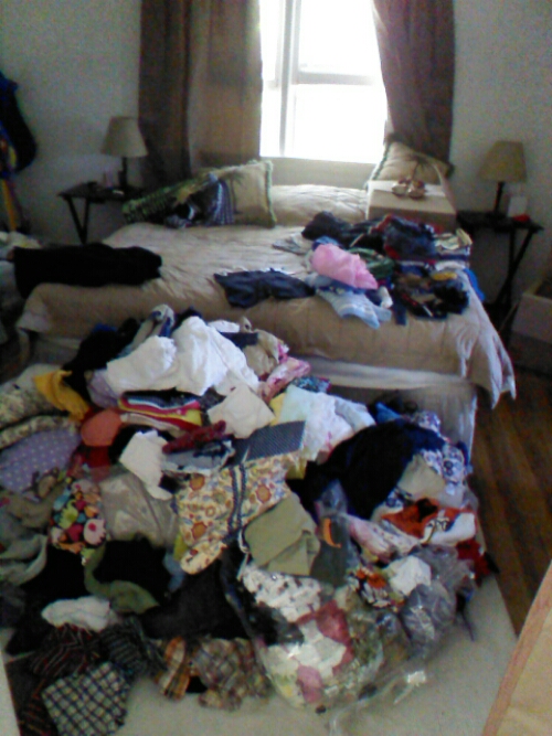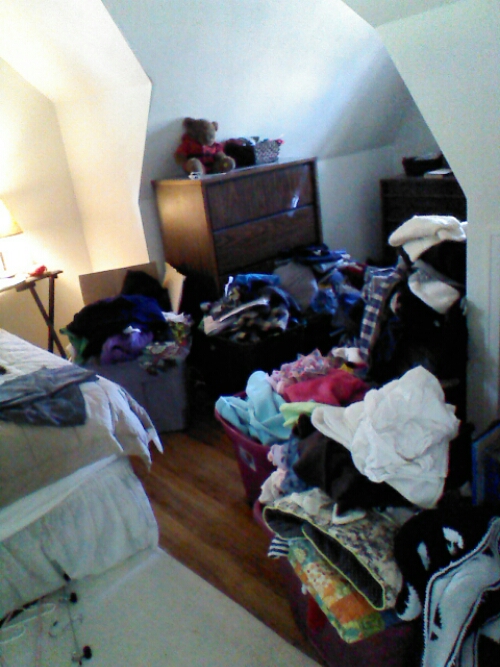 Update…floor cleared, sorted into categories by person. Now for the hard part…