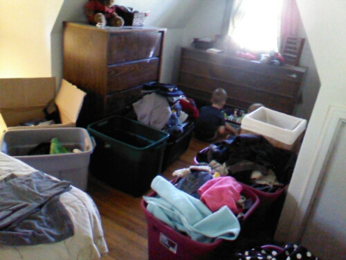 Today’s project, which will surely spill into other days, is the mass sorting of every item of clothing our family owns. Africa, France, Store, Give Away…it will be very good for my personal sanity to FINALLY have it done! I’m actually really excited about!