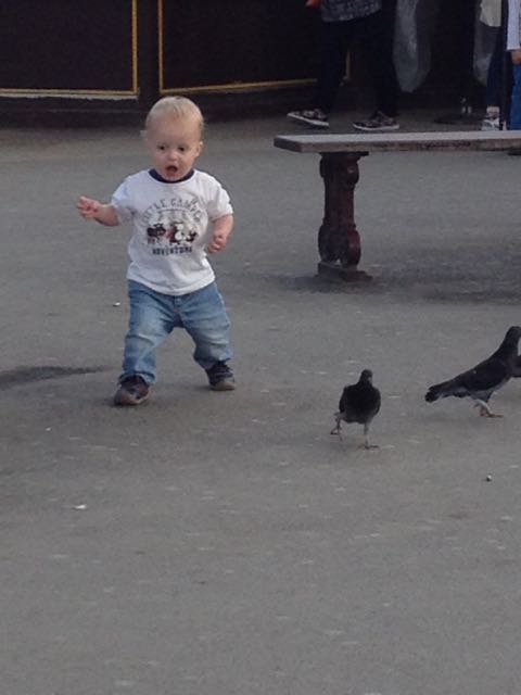 Axel, under the Eiffel Tower, having the best time ever, chasing pigeons. And screaming. Did you know loud sounds echo under the Eiffel Tower? They do, indeed.