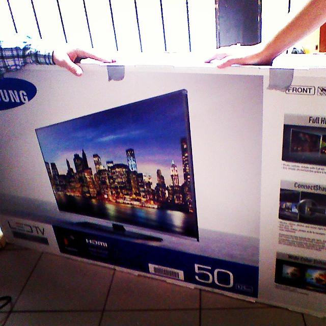 “No, I got a television. It’s in a giant, flat, Samsung box.”