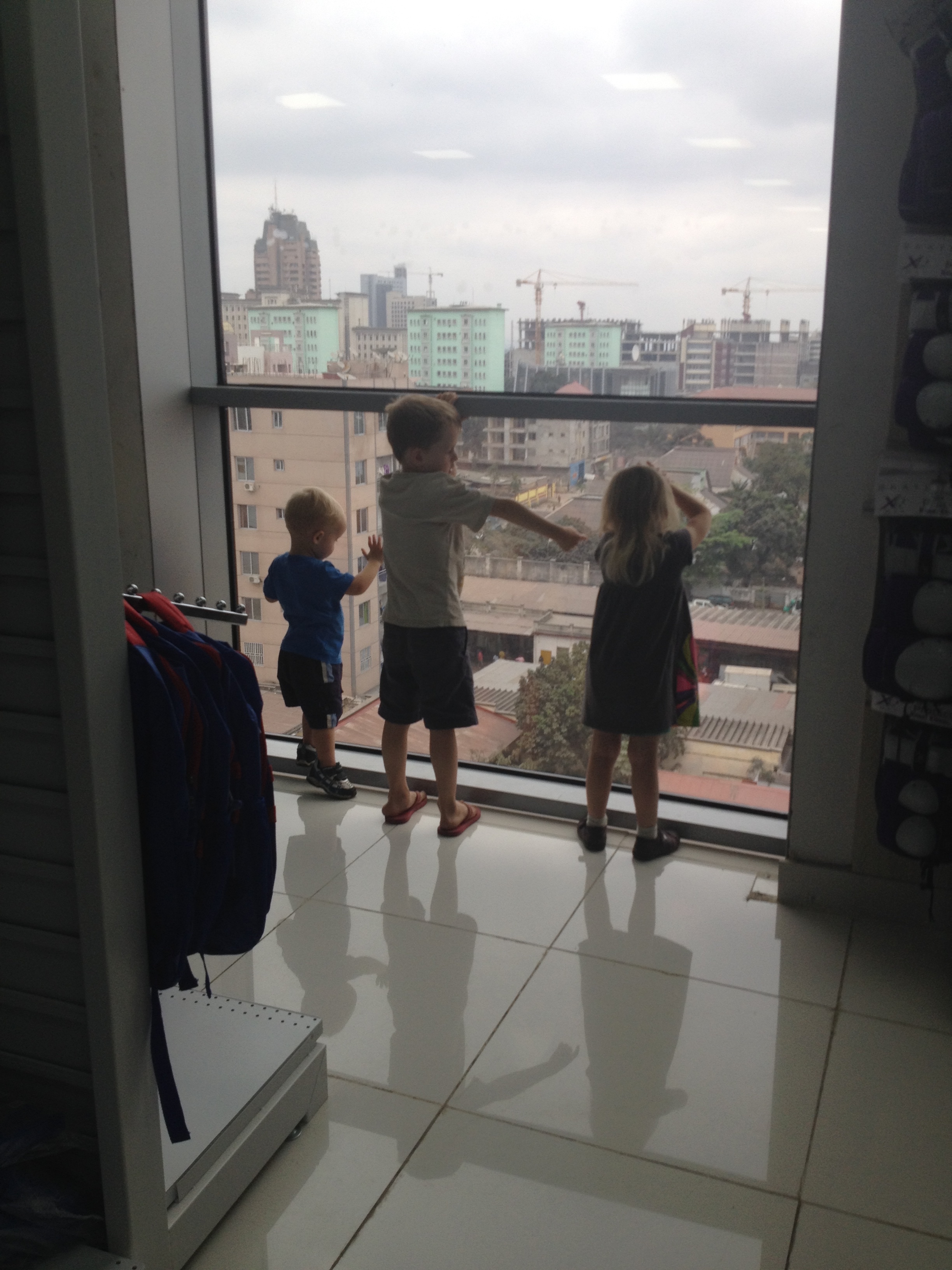 Our first stop was the MAF office for cash. The kids hadn’t been to see where their Daddy works, so it was a good first stop. Except I totally forgot that Wednesday mornings begin with a devotional and prayer time with the office staff which was so rudely interrupted by some lady and her three kids. Oops. Actually, we were warmly welcomed to join in the prayer time and the kids did great. (If great is Axel talking through most of the prayer time, then yes, great.)
